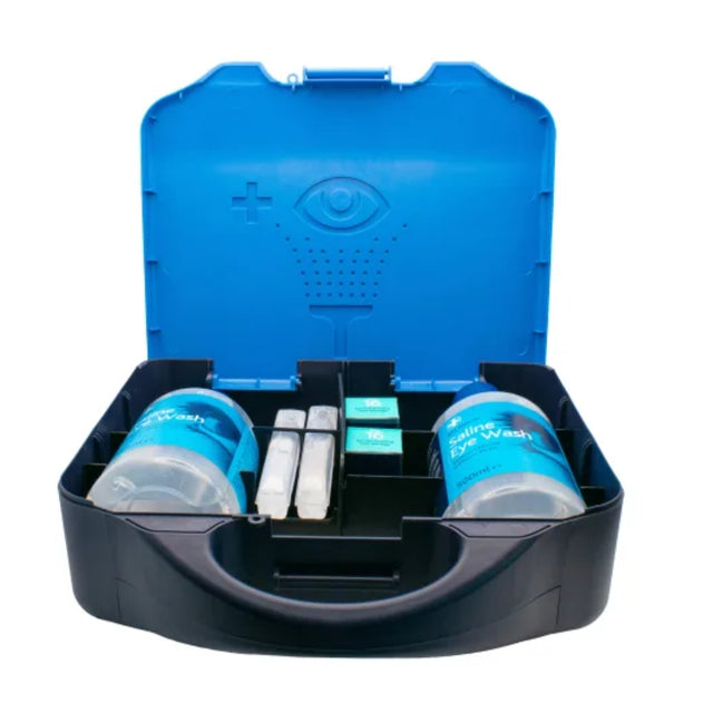 The Scan eye wash station is supplied in a compact 'briefcase' style eye wash kit box which can be wall mounted.
