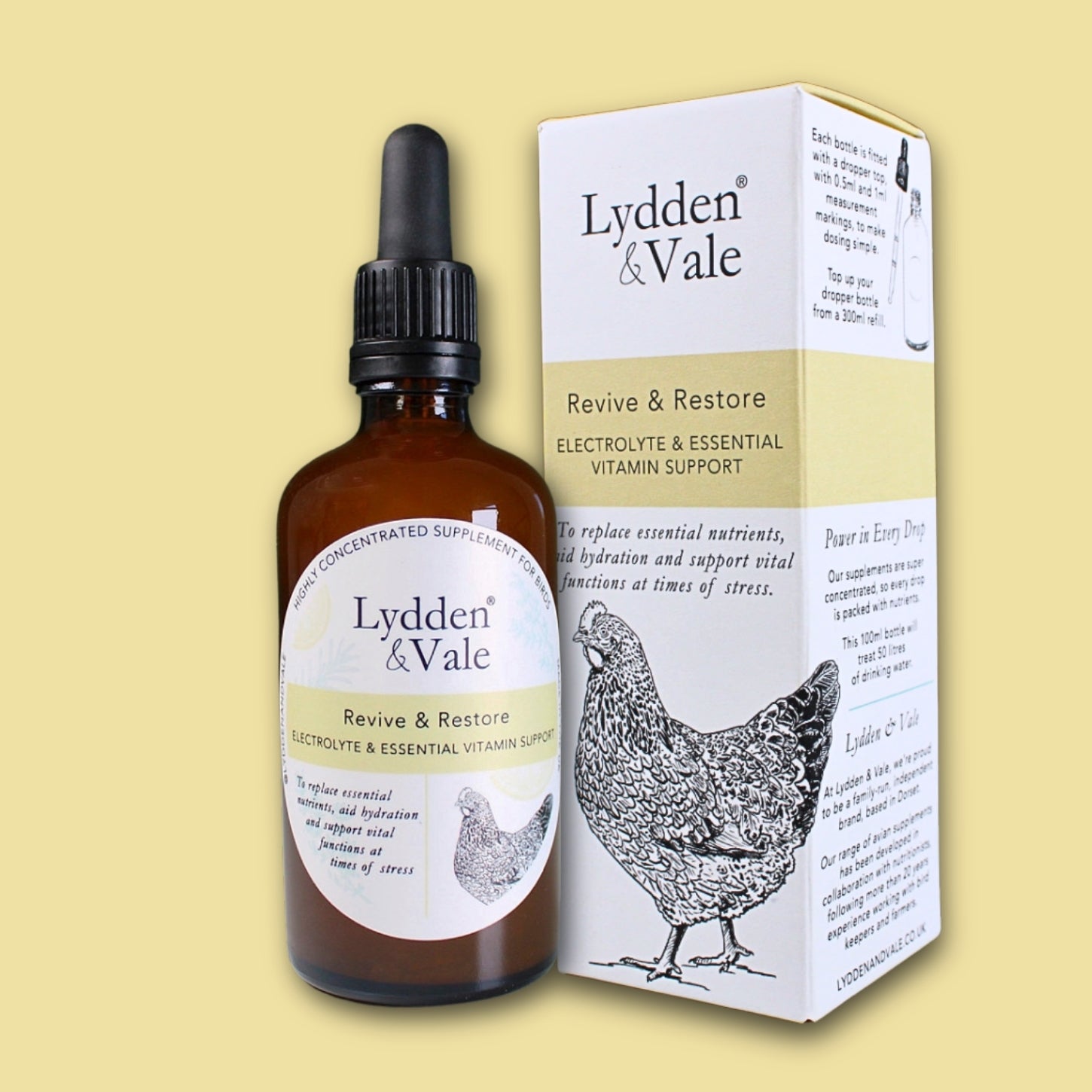 Lydden and Vale's Revive & Restore is a concentrated supplement to help poultry and avians cope with stress, stimulate appetite and replace essential nutrients.